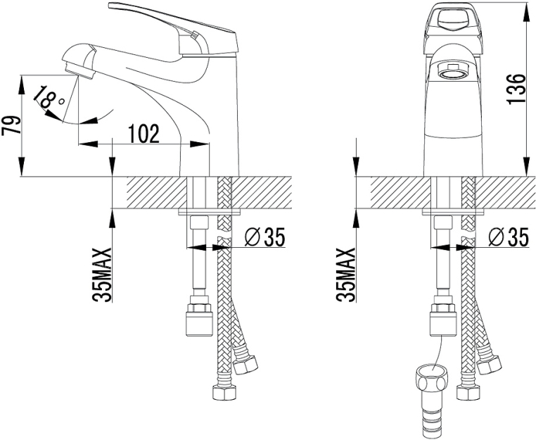 В комплект поставки входят крепления, настенный держатель, душевой шланг, душевая лейка, аэратор и гибкая подводка.