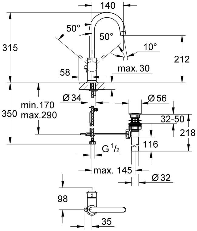 Смеситель для раковины GROHE BauClassic DN 15 23095000 со сливным гарнитуром, хром
