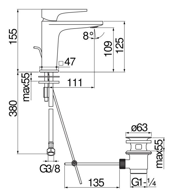 Смеситель для раковины Nobili Seven SE124118/1BM Velvet black