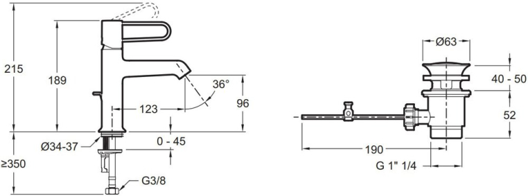 Смеситель для раковины Jacob Delafon Odeon Rive Gauche E21028-BL-BL черный