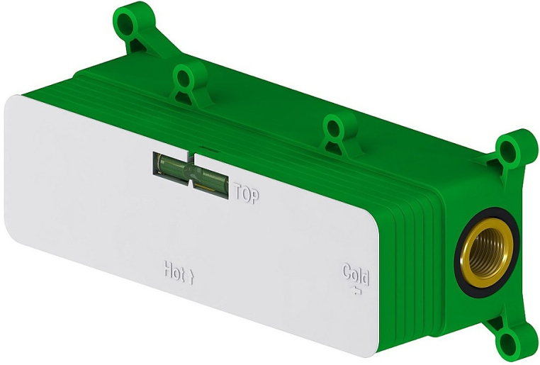 В комплект поставки входят смеситель, монтажная коробка, излив, декоративная накладка, ручка смесителя и шестигранный ключ.