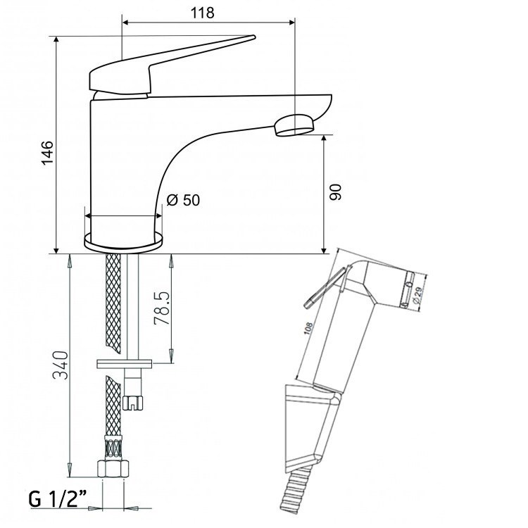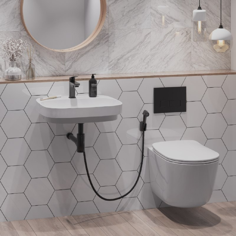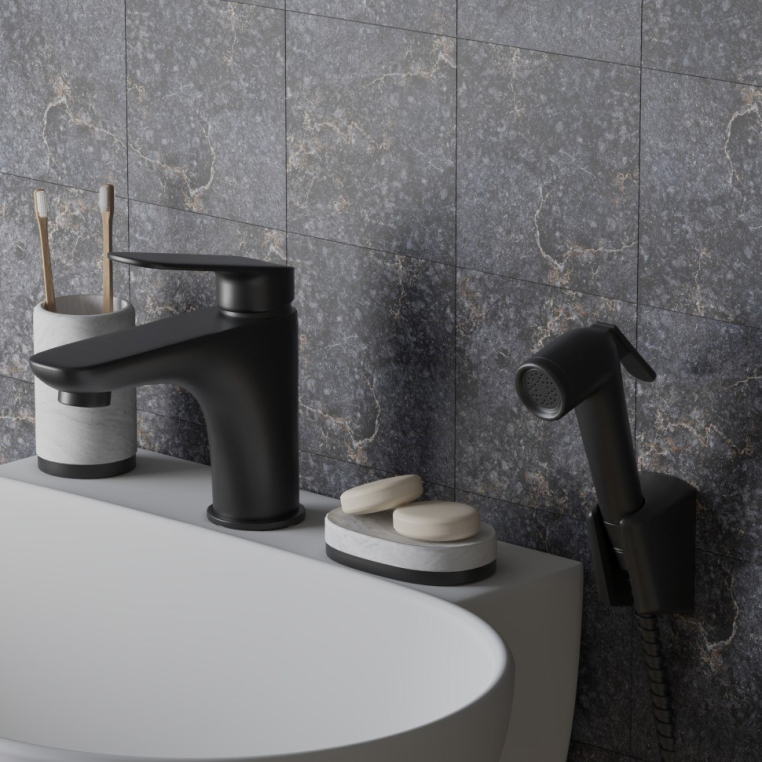 Смеситель для раковины Paini Laguna с гигиеническим душем, черный
