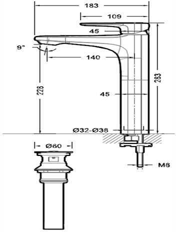 Высота излива, мм