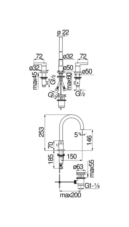 Смеситель для раковины Nobili Lira LR116211/1T1BM черный