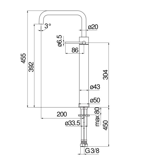 Высота излива, мм