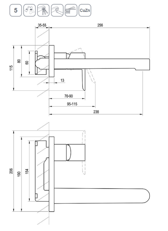 Длина излива (расстояние от корпуса смесителя до конца излива): 23.8 см