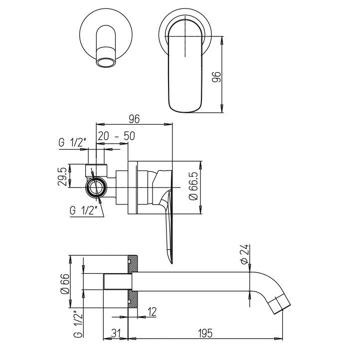 Встраиваемый смеситель для раковины Paini Nove 09CR208.