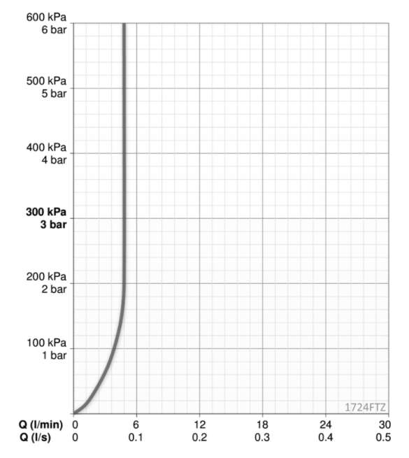 • Потеря давления при расходе 0.1 л/с: 200 kPa