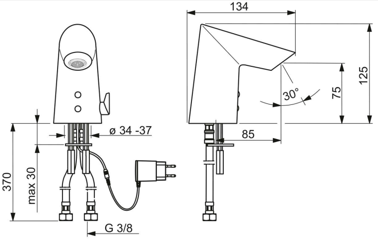 • Установочные размеры: G3/8