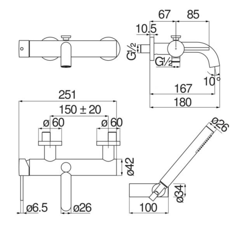 В комплект поставки входят держатель, ручной душ и шланг.