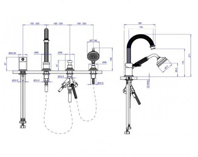 Смеситель на борт ванны с выдвижным душем и переключателем Cezares Olimp OLIMP-BVDM-01-L хром