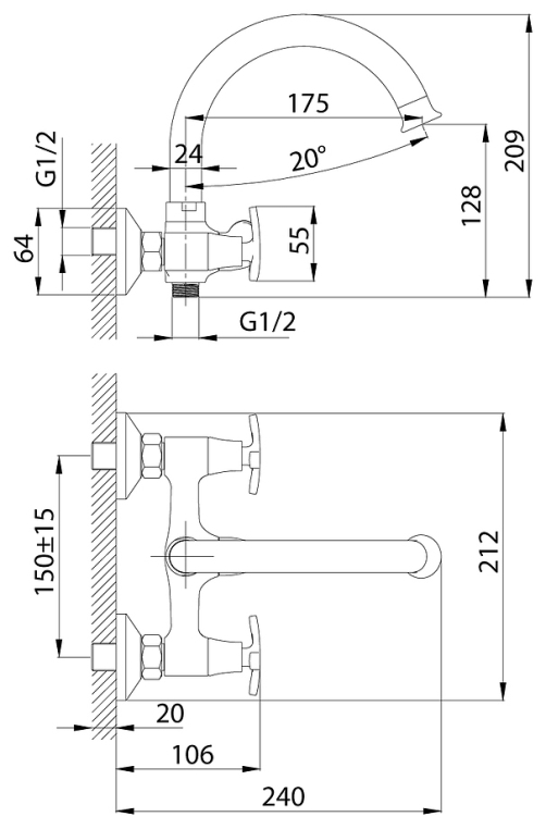 Высота излива, мм