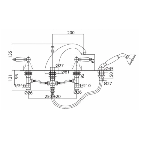 Бронзовый смеситель с душем для установки на ванную. Ручка душа бронзовая.
