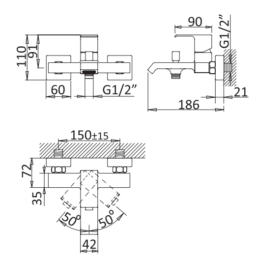 Смеситель Cezares Porta PORTA-VM-NOP для ванны и душа черный