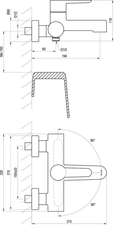 Смеситель для ванны Ravak Puri Black PU 022.20/150 X070185 черный матовый