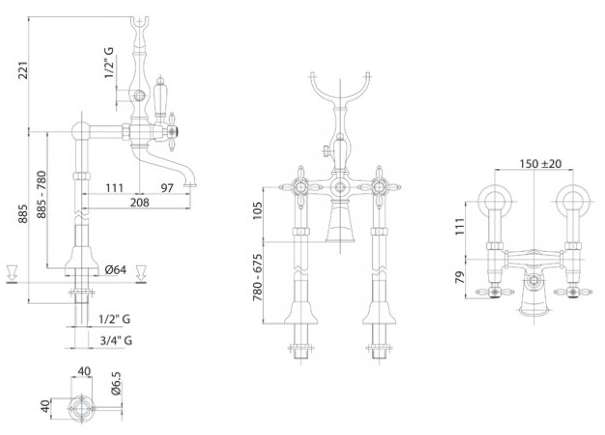 Смеситель для ванны Cezares Nostalgia NOSTALGIA-VDP-03/24-M золото