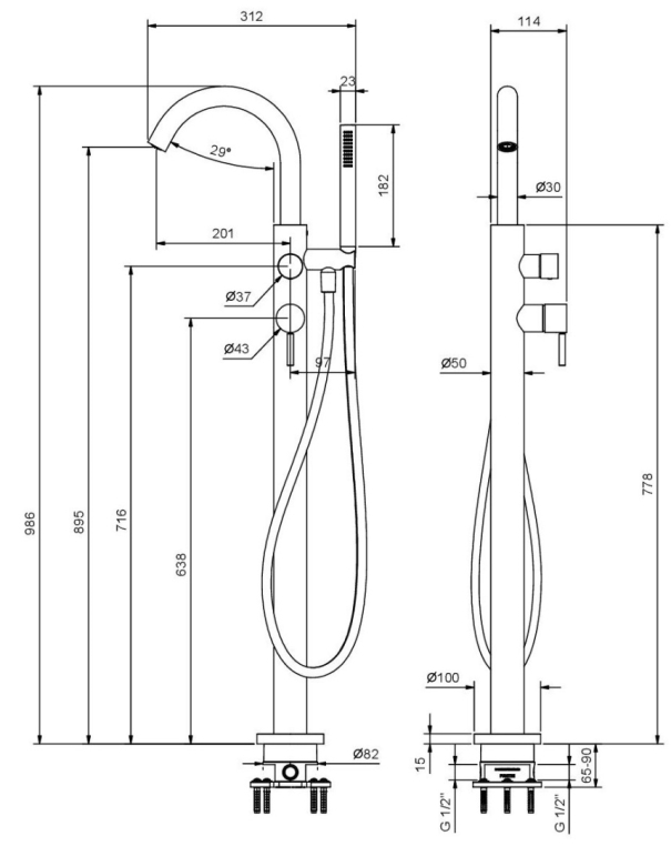 Смеситель для ванны Fantini NOSTROMO SMALL 5002E880B, наружная часть