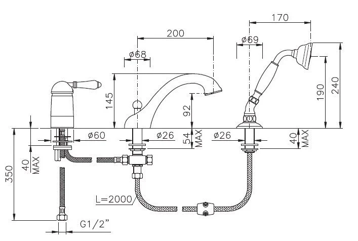 Смеситель на борт ванны с ручным душем Nicolazzi El Capitan 3414BZ75
