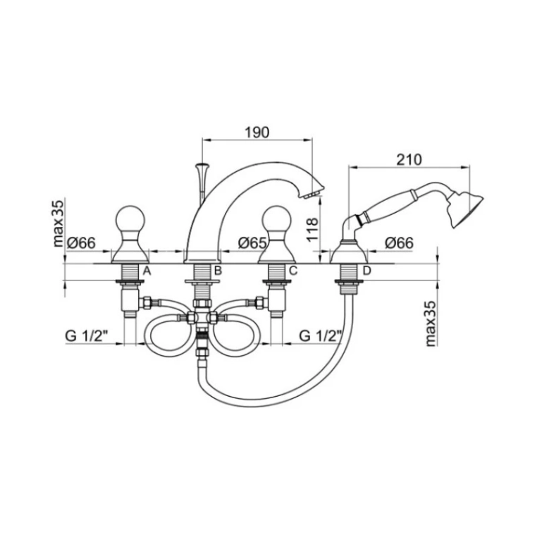 Смеситель на борт ванны Webert Karenina. Смеситель изготовлен из латуни.