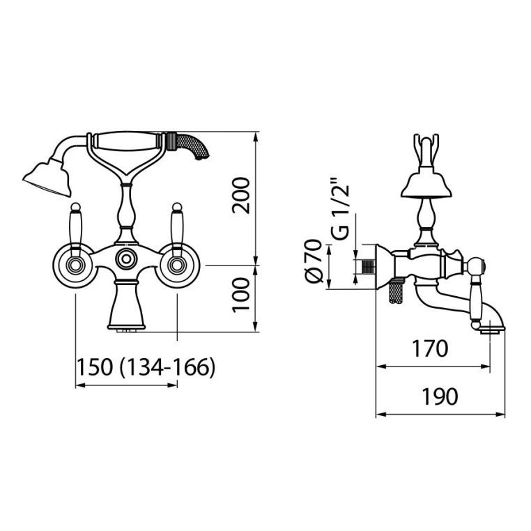 Смеситель для ванны Webert Dorian. Смеситель изготовлен из латуни.
