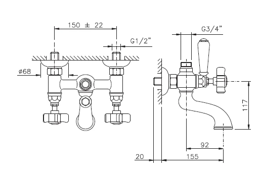 Смеситель для ванны под душевую стойку Nicolazzi DAMES ANGLAISES 1400CR18