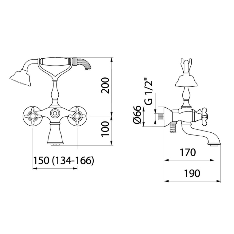 Смеситель для ванны Webert Ottocento. Смеситель изготовлен из латуни.