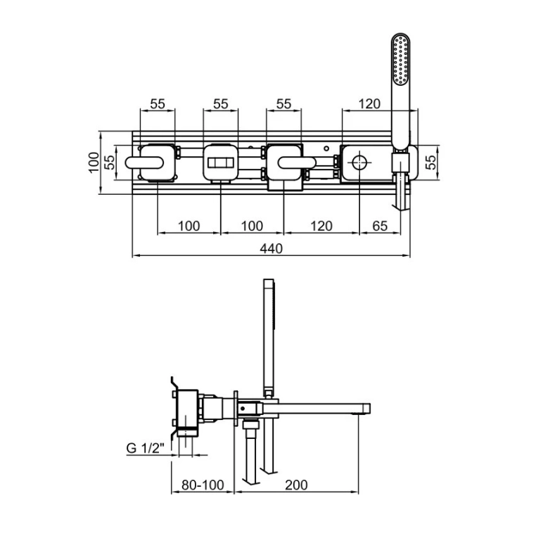 Смеситель для ванны Webert Living встраиваемый в стену. Смеситель изготовлен из латуни.