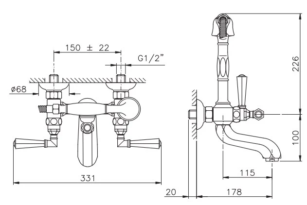 Смеситель Nicolazzi Nuova Brenta 2500 BZ для ванны, бронза: - излив литой с аэратором; - предназначен для душевой стойки; - с ручным переключателем душ / ванна; - S-образные подключения DN 15 (G1/2); - монтаж вертикальный; - ручки в цвет корпуса;