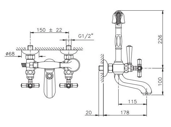 Смеситель для ванны 2 отверстия, с душевой лейкой и шлангом, цвет: бронза, серия Teide. Rubinetteria Nicolazzi spa – одна из известнейших итальянских фабрик, специализирующихся на производстве смесительного оборудования и аксессуаров для ванных комнат класса «люкс».