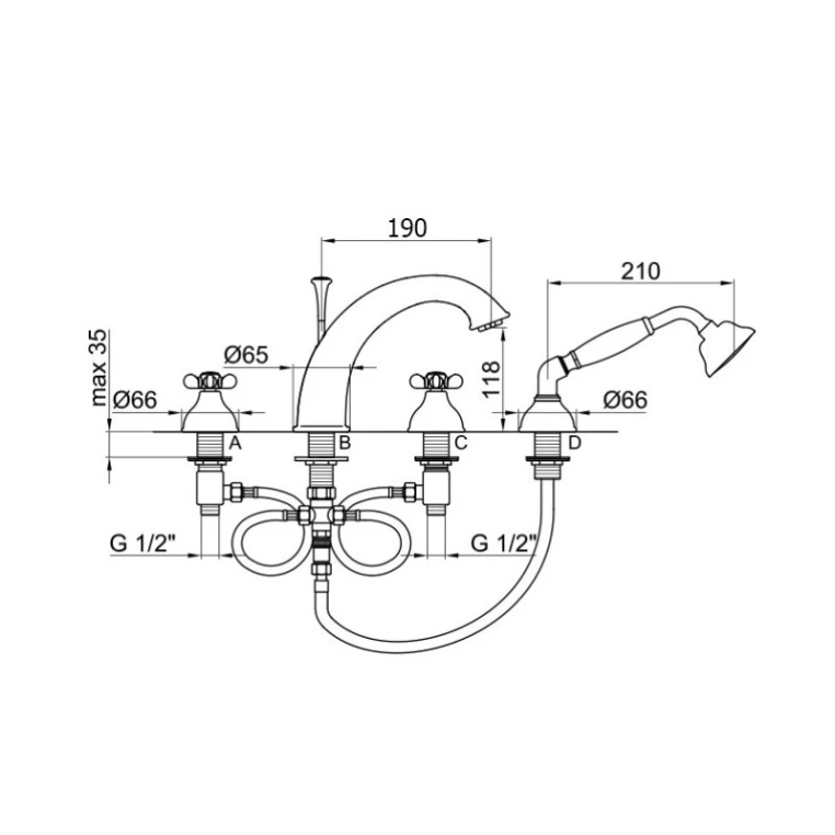 Смеситель на борт ванны Webert Ottocento. Смеситель изготовлен из латуни.