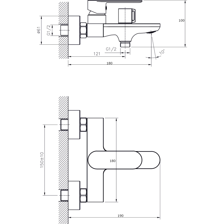 Смеситель для ванны RUSH арт. LU1630-44 из коллекции LUSON с металлической ручкой, изготовлен из высококачественной латуни и имеет рычажное управление.