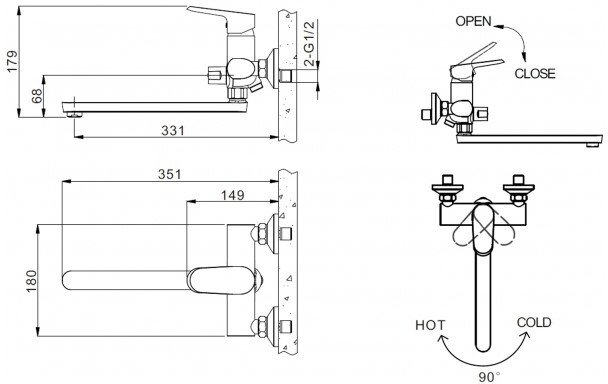 Смеситель для ванны c длинным изливом Bravat Pure F6105161C-01A