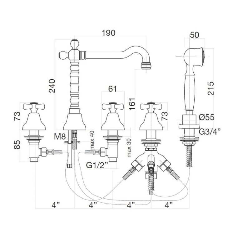 Смеситель на борт ванны Webert Armony. Смеситель изготовлен из латуни.