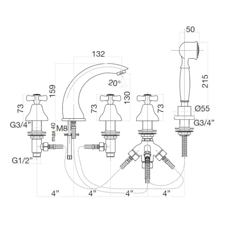 Смеситель на борт ванны Webert Armony. Смеситель изготовлен из латуни.