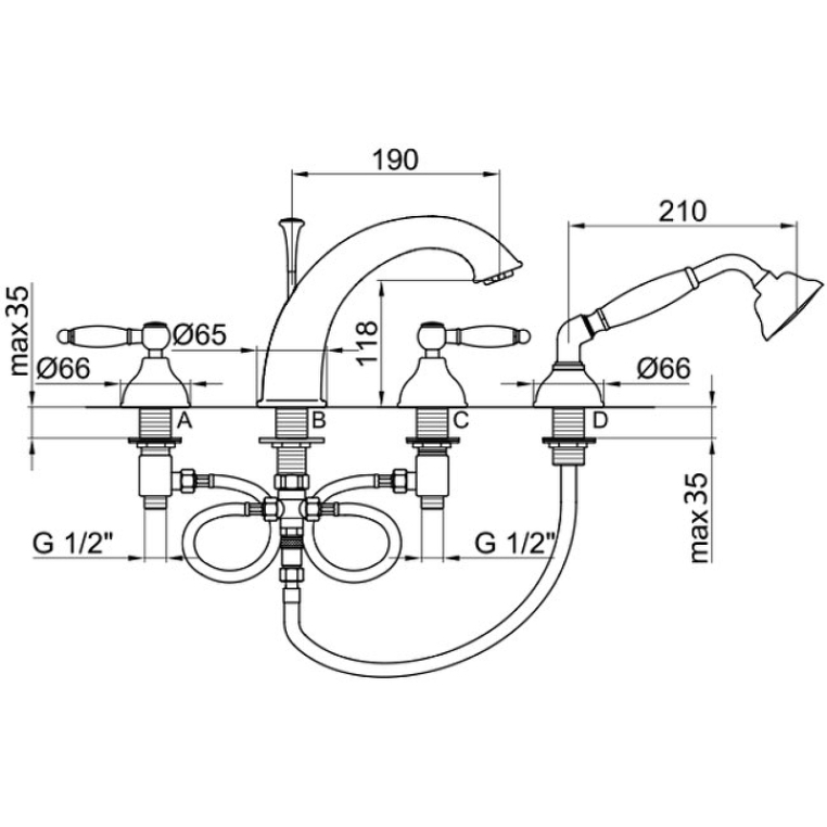 Смеситель на борт ванны Webert Dorian. Смеситель изготовлен из латуни.