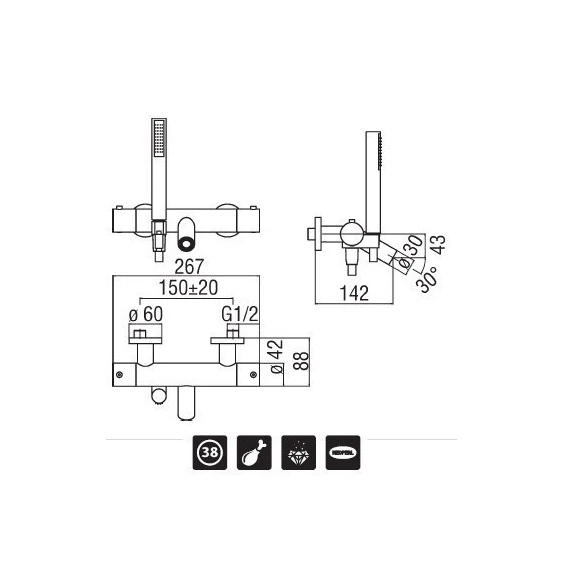 В комлект поставки входит однорежимный ручной душ и душевой шланг.