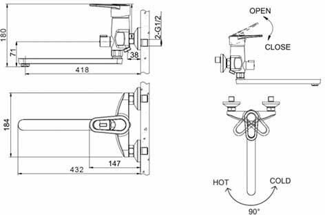 Смеситель для ванны c длинным изливом Bravat Loop F6124182CP-02L-RUS