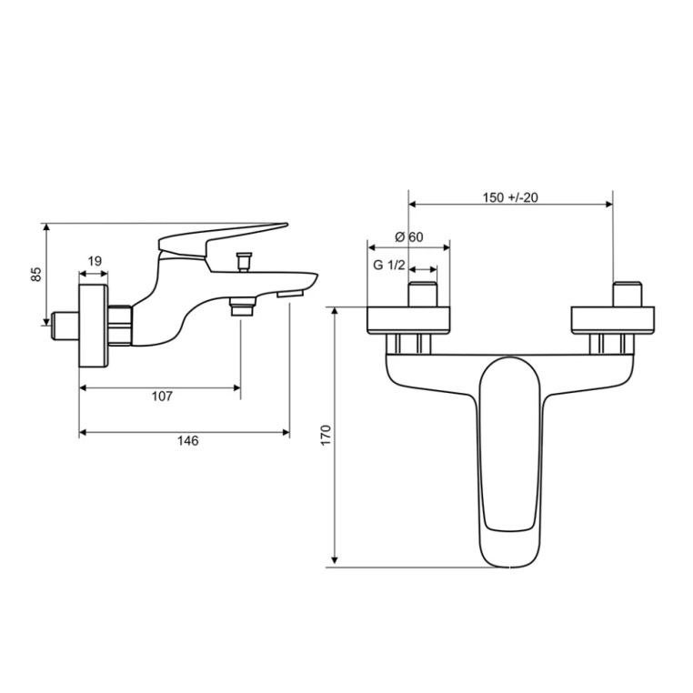 • Длина излива 146 мм