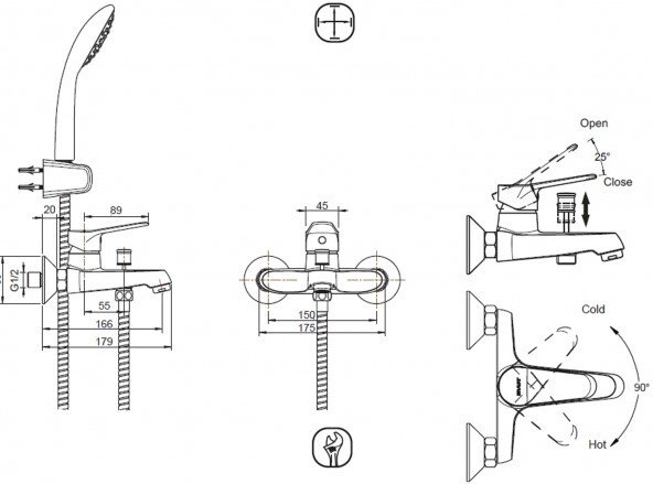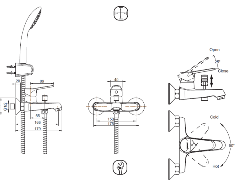 Поток воды: Излив: 20L/min @ 0.3MPa; Душ: 12L/min @ 0.3 MPa