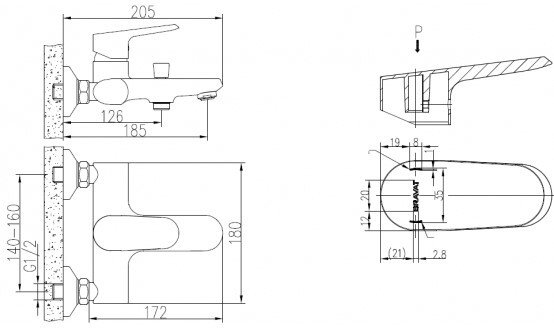 Смеситель для ванны c коротким изливом Bravat Pure F6105161C-01