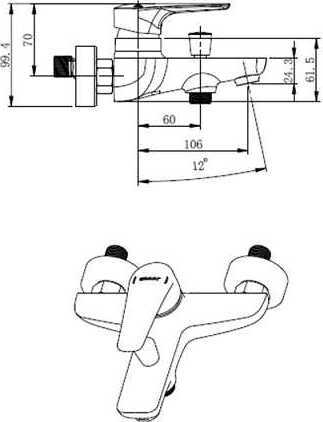 Смеситель для ванны короткий излив Bravat Arden F6351385CP-01-RUS