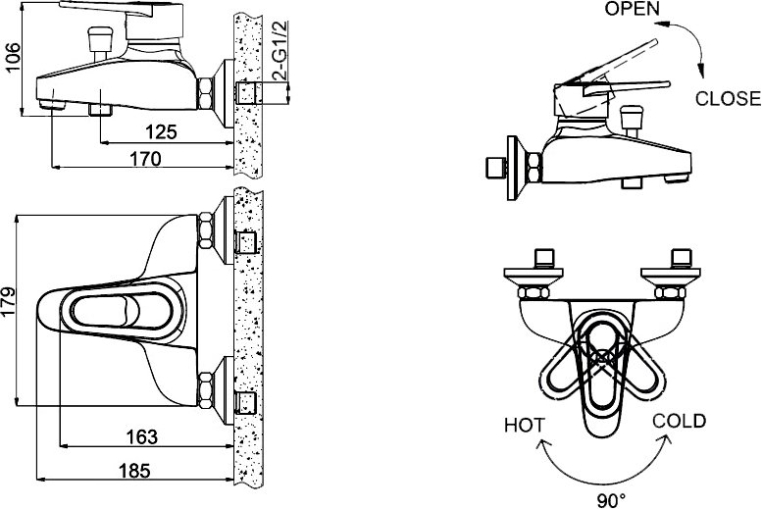 Смеситель для ванны c коротким изливом Bravat Loop F6124182CP-01-RUS