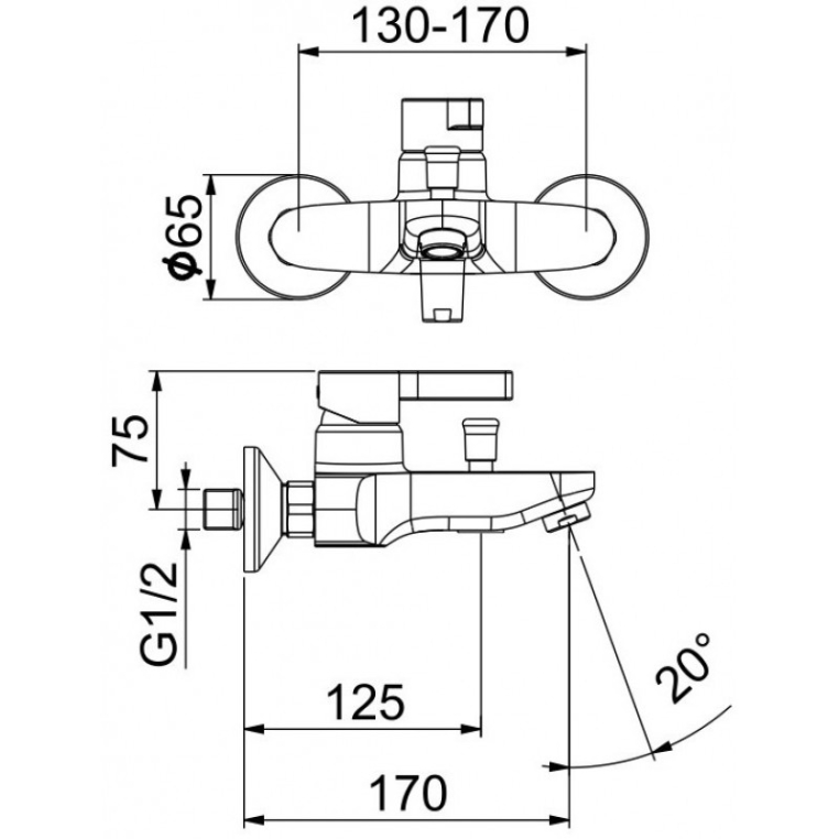 Смеситель для ванны Webert DoReMi. Смеситель изготовлен из латуни. Без душевого гарнитура.