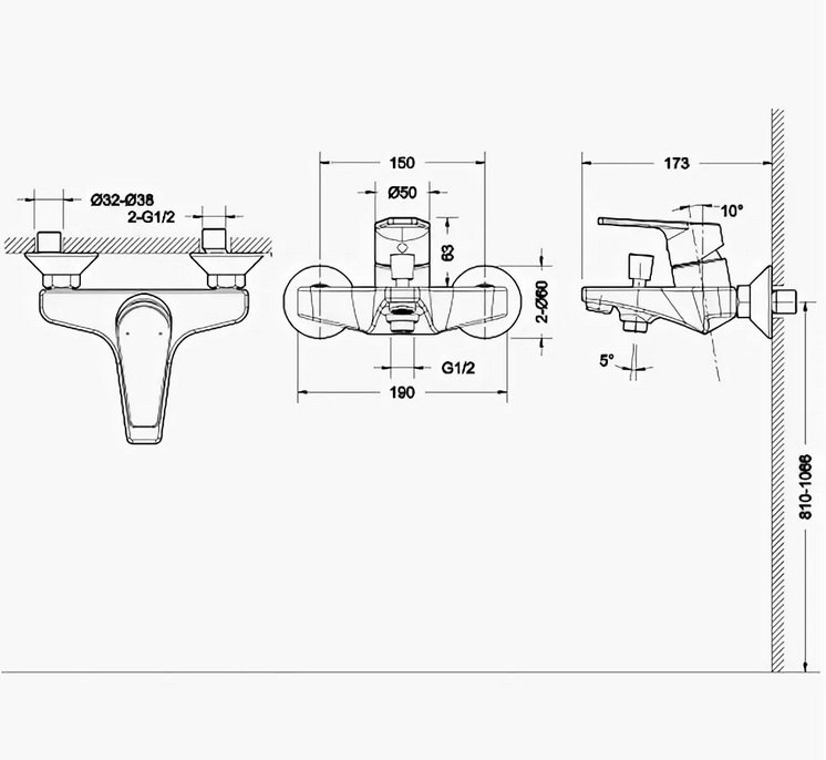 Смеситель для ванны с коротким изливом с аксессуарами Bravat Line F65299C-B-RUS