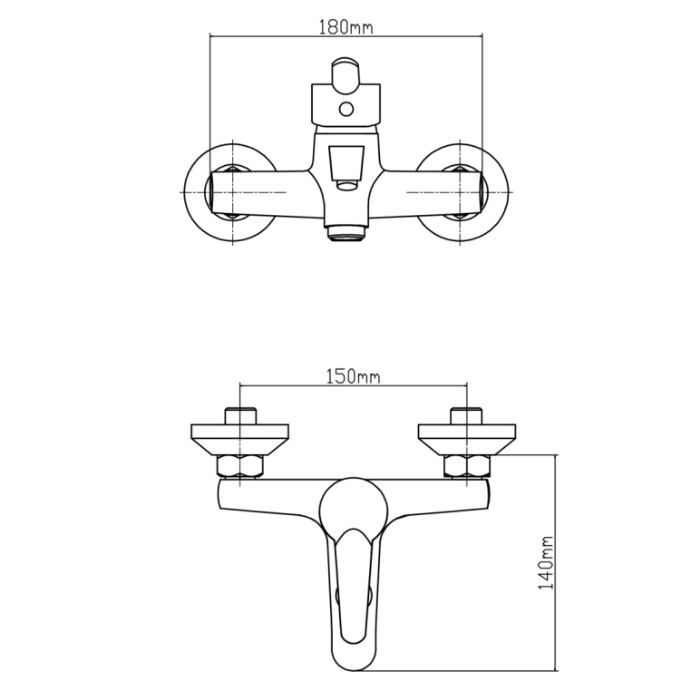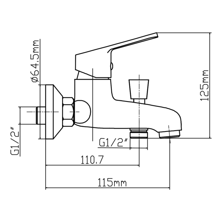 Смеситель для ванны, корпус латунный, металлический шланг 1,5 м, душевая лейка диаметром 96 мм, пластиковый держатель на 2 положения.