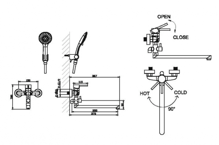 Смеситель для ванны длинный излив Bravat Slim F6332366CP-01L-RUS
