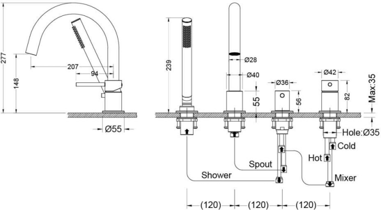 Высота излива, мм