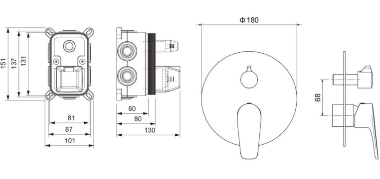 Смеситель из латуни с установочной коробкой на 3 потребителя