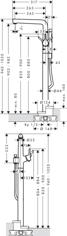 Высота излива, мм