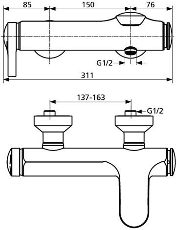 - Металлическая рукоятка с индикатором горячей / холодной воды,